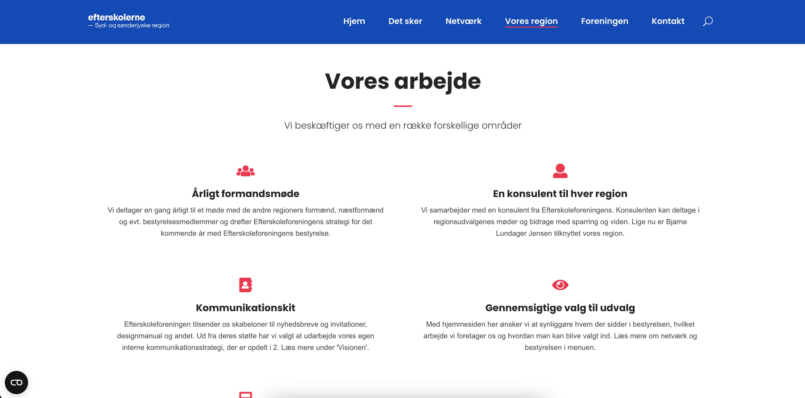 Efterskolerne Syd I had the pleasure to help Efterskolerne Syd on their journey towards a more digital experience to their members. Client: Efterskolerne Syd Date: DEC 2022 Services: WEBSITE SETUP, DESIGN, CODING Launch Project